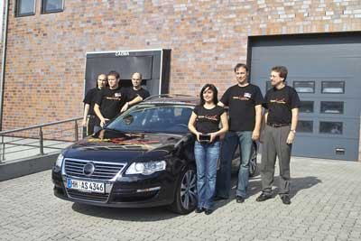 Technik: So arbeitet ein Ibeo Laserscanner Der Sensor sendet einen Lichtstrahl (Laserimpuls) aus. Die Reichweite reicht dabei von 30 cm bis zu 200 m. Der Lichtstrahl wird von den Objekten, auf die er trifft, reflektiert. Diese Reflexion wird durch eine im Gerät sitzende Photodiode aufgefangen und zu Signalen verarbeitet. Der Zeitunterschied zwischen ausgesandtem Lichtimpuls und Empfang der Reflexion wird mit der Lichtgeschwindigkeit verrechnet. So erhält man genaue Angaben über die Entfernung des reflektierenden Gegenstands. Schon mit der zweiten Reflexionsmessung kann dessen Geschwindigkeit und Bewegungsrichtung bestimmt werden. Durch patentrechtlich geschützte Erfindungen stehen den Ibeo Sensoren insgesamt 16 Reflexionen (Echos) pro Messung zur Verfügung. Das Ergebnis wird per Spezialsoftware in zwei Computern verarbeitet und soll so eine zuverlässige und sichere Objekterkennung bilden. Der Sensor scannt und misst zeitgleich auf vier horizontalen Ebenen. Der Vorteil daran: Objekte werden sicher erfasst, denn Nickbewegungen des Fahrzeugs, die zum Beispiel durch unebene Straßenverhältnisse oder einen dynamischen Fahrstil entstehen, werden kompensiert. Die Laserscanner sollen für das Auge ungefährlich (Laserklasse 1) sein. Rennwagen und Team: Das Team-LUX ist einer der 36 Halbfinalisten, die zur WM der autonom fahrenden Fahrzeuge antreten, der Darpa Urban Challenge in den USA. Der präparierte Serienwagen kann typische städtische Verkehrssituationen autonom bewältigen, zum Beispiel Gegenverkehr beachten, überholen, abbiegen, Routen berechnen, U-Turns und schwierige Kreuzungssituationen meistern. Die Höchstgeschwindigkeit darf im Wettbewerb 50 km/h nicht überschreiten. Das Fahrtraining wurde in Lübeck-Blankensee gemacht.
