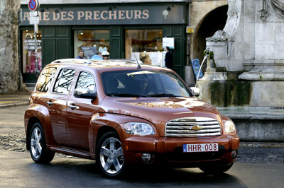 BU: Der komplett ausgestattete Chevrolet HHR ist dem Chrysler PT Cruiser nachempfunden, jedoch 20 cm länger. Nur ein elektrisches Glasdach (790 Euro) und Metallic-Lack (490 Euro) kosten Aufpreis. Technische Daten Motor: Vierzylinder Hubraum: 2399 ccm Leistung: 125 kW/170 PS max. Drehmoment: 222 Nm Beschleunigung: 0-100 km/h in 9,1 s (Automatik in 10,0 s) Höchstgeschwindigkeit: 180 km/h Verbrauch: 8,6 l Superbenzin auf 100 km, CO2-Ausstoß 207 g/km Antrieb: 5-Gang-Schaltgetriebe oder Viergang-Automatik (1200 Euro Aufpreis) Länge: 4,48 m Breite: 1,76 m Höhe: 1,60 m Leergewicht: 1470 kg Zuladung: 453 kg Tankinhalt: 61 l Gepäckraum: 430-960 l Versicherungen: 19 (HP), N18 (TK), N24 (VK) Preis: ab 22.990 Euro