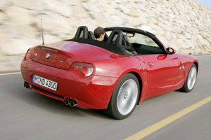 Technische Daten Motor: Sechszylinder Reihen-Benzinmotor, 3246 ccm, 252 kW/343 PS, 24 V, max. Drehmoment 365 Nm bei 4900 U/min., Euro4. Antrieb: Heckantrieb, Sechsgang- Schaltgetriebe, DSC, ABS, variable Differentialsperre. Maße & Gewichte: Länge/Breite/Höhe = 4,11 m/1,78 m/1,30 m; Leergewicht 1485 kg, Zuladung 295 kg, Gepäck 200-220 Liter. Fahrwerte: 0-100 km/h in 5,0 Sekunden; Vmax. 250 km/h. Verbrauch: Stadt/Land/Gesamt = 18,2/8,6/12,1 Liter Super/100 km. Preise: Z4 2,0i Roadster, 110 kW/ 150 PS, 28900 Euro; Z4 2,5i Roadster, 130 kW/177 PS, 31400 Euro; Z4 2,5si Roadster, 160 kW/218 PS, 34400 Euro; Z4 3,0si Roadster, 195 kW/265 PS, 40400 Euro; Z4 3,0si Coupé, 195 kW/265 PS, 38900 Euro; Z4 M Coupé 55900 Euro, Z4 M Roadster 57900 Euro.