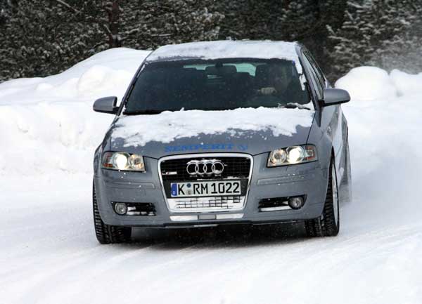 Journalist und Rallyefahrer Ingo Buck im Audi A3 auf Semperit Speed Grip-Reifen im Grenzbereich unterwegs